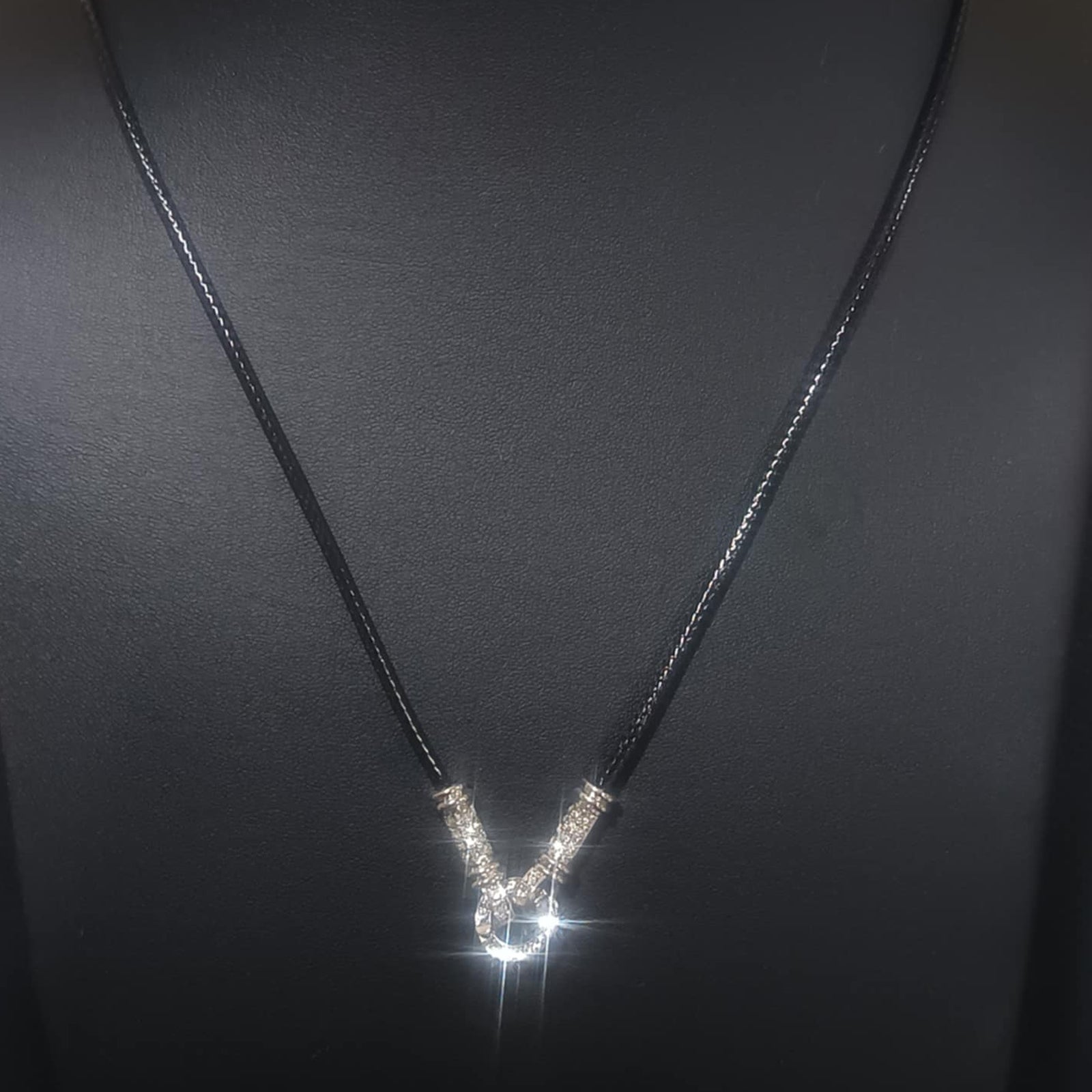 สร้อยขั้วเพชรแบบห่วงกลมสีเงิน Y061