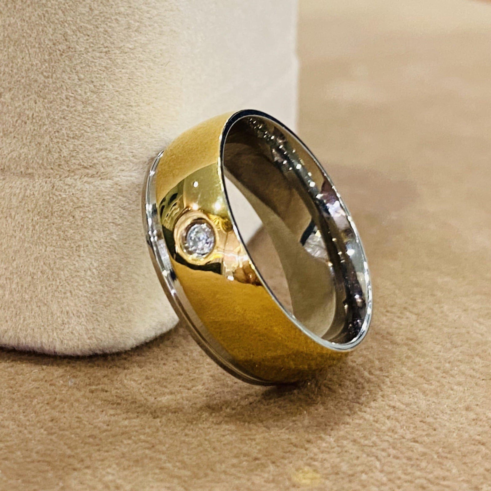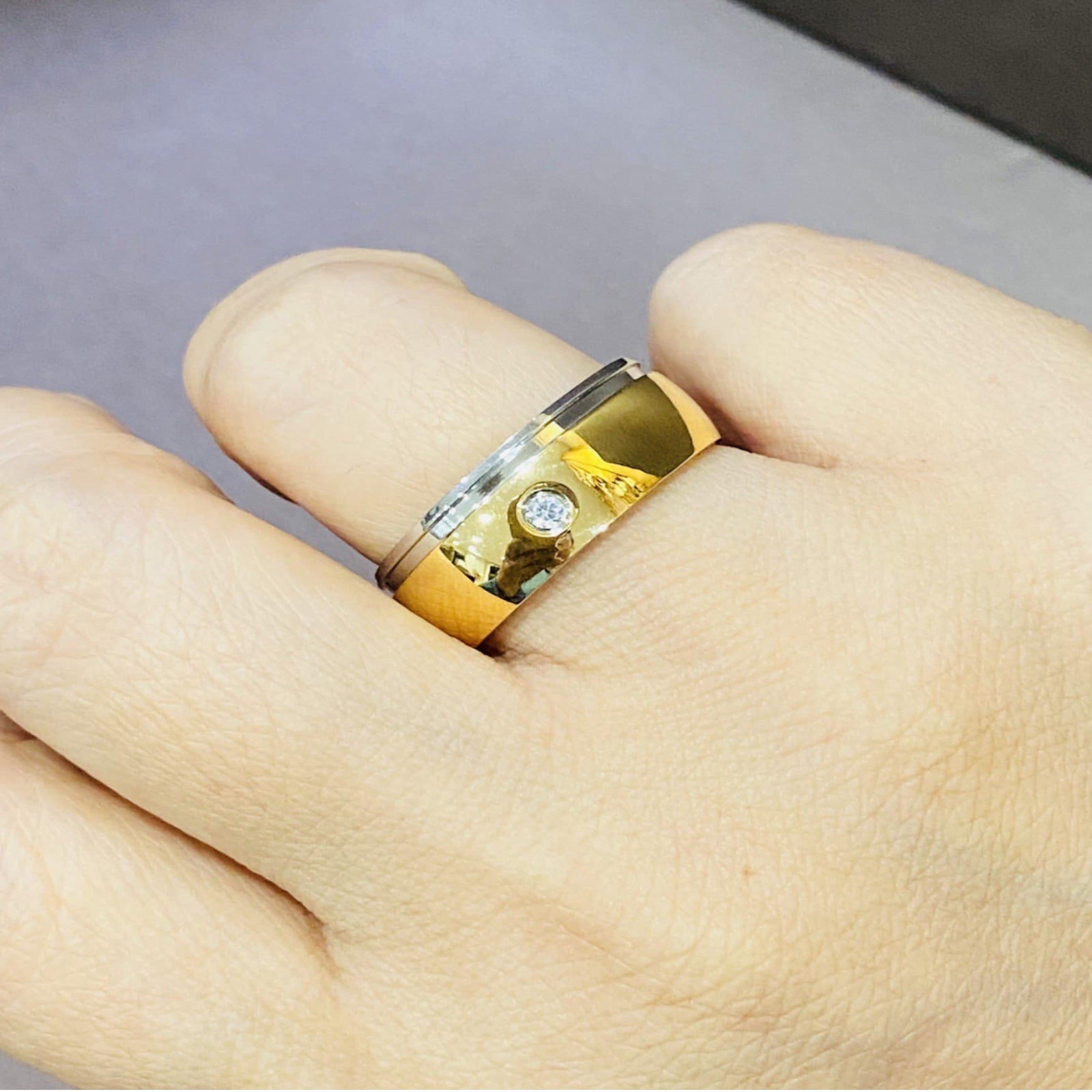 แหวนทูโทนยกขอบแบบฝังเพชร Y006